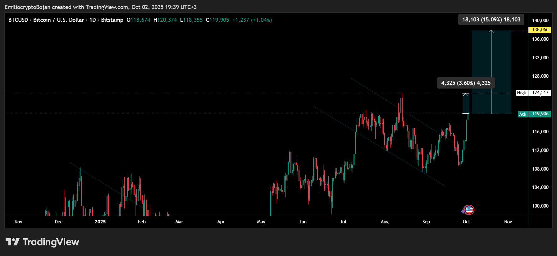 在 Q4 再有两次降息可能会让比特币在十月突破 $150K,点燃一个火热的 Upvember 和 Upcember.