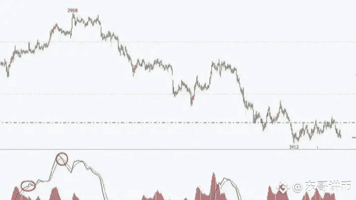 背离,是动能衰竭的信号。有效的背离指的是双线和量能柱同时背离。