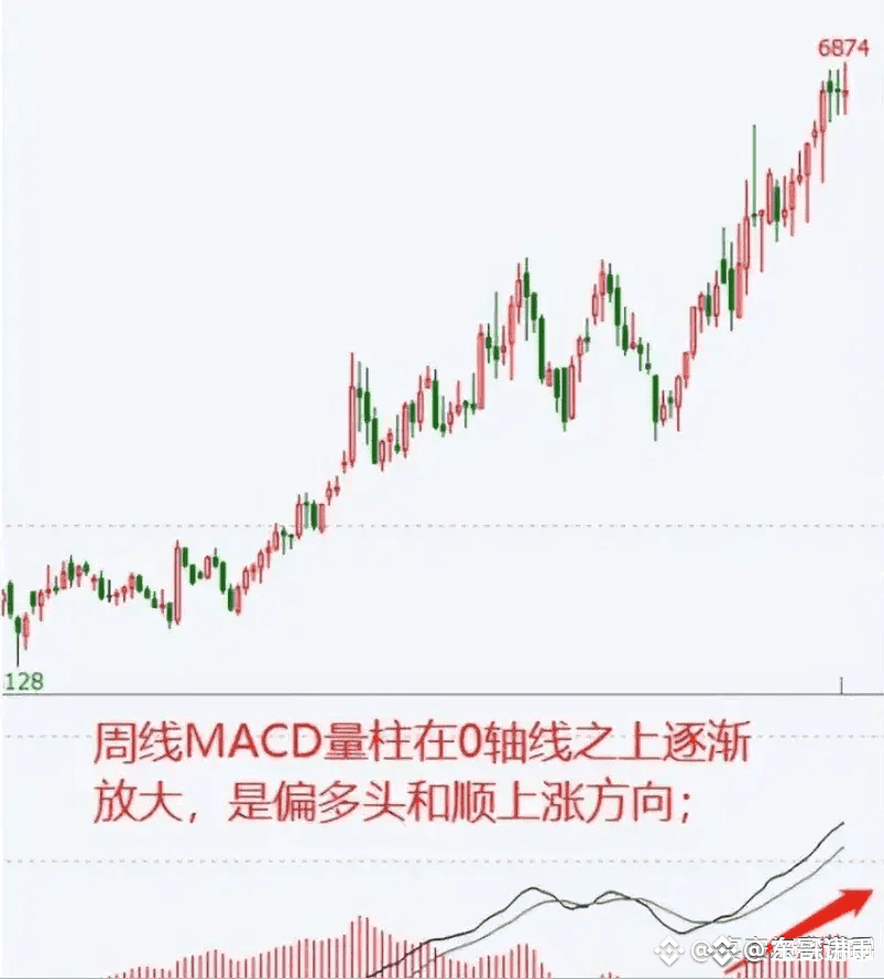 趋势上涨+量能柱始终在0轴之上,表明上涨趋势延续;趋势下跌+量能柱始终在0轴之下,表面下跌趋势延续。