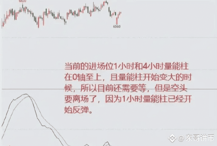 0轴下的量柱由小变大,为偏空趋势,盘面表现为下降趋势;