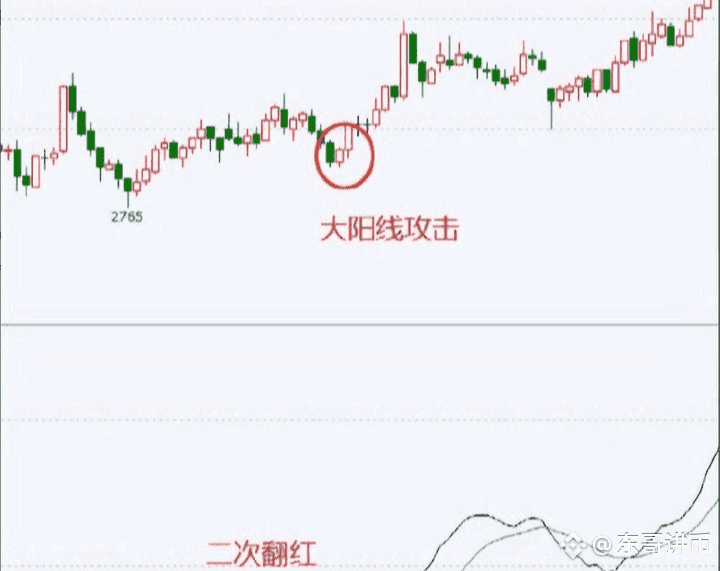 2.双线回到0轴附近后,DIF线立即调头向上,形成佛手向上的形态。