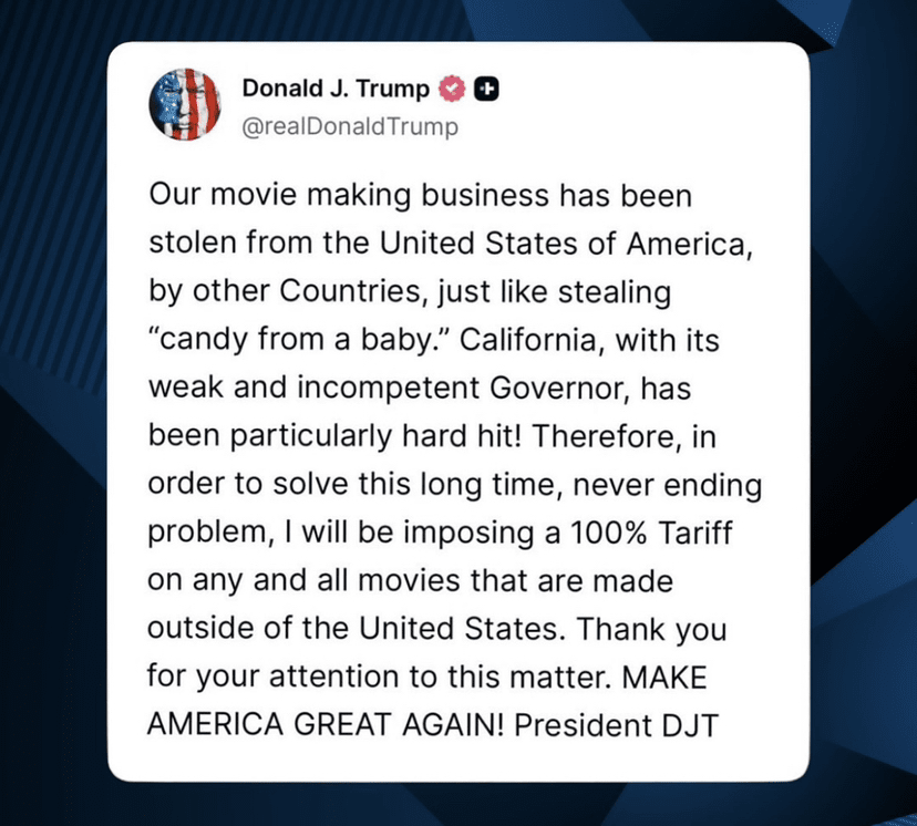 #FilmTariffs #HollywoodPolitics #AmericanFilmIndustry #TrumpTariffPlan #GlobalCinemaImpact