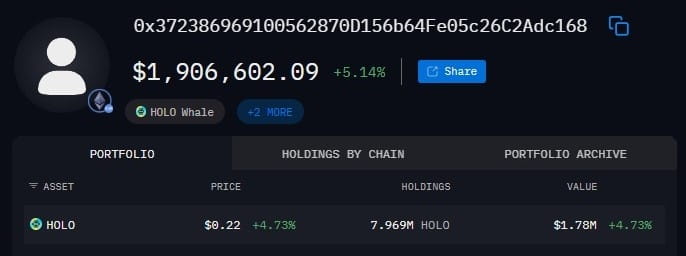 截至目前,它仍持有7.969M $HOLO ( $1.78M);一个显著的金额,表明这个游戏还没有结束。