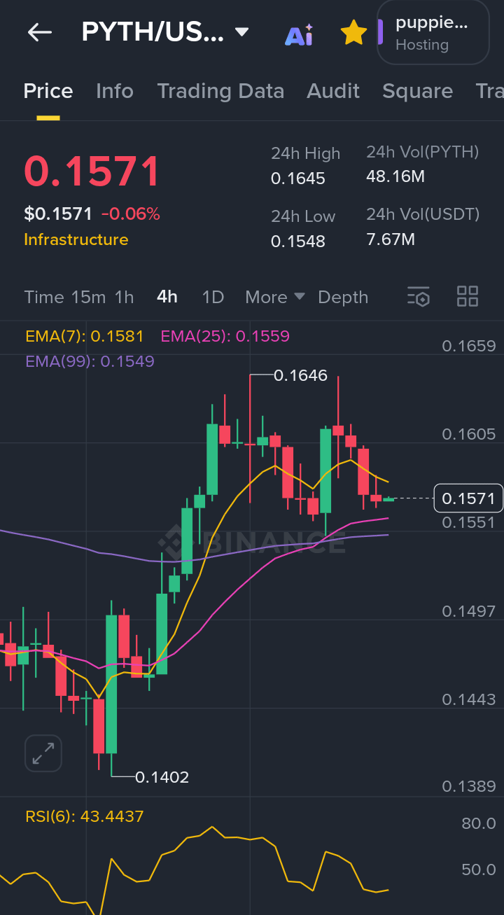 截至2025年10月4日,PYTH的交易价格约为0.1568美元,反映出过去24小时略微下降0.23%。这一活动发生在显著收益期之后,并与过去一周4.39%的增幅相一致,展示了该资产的特征性波动性。$PYTH