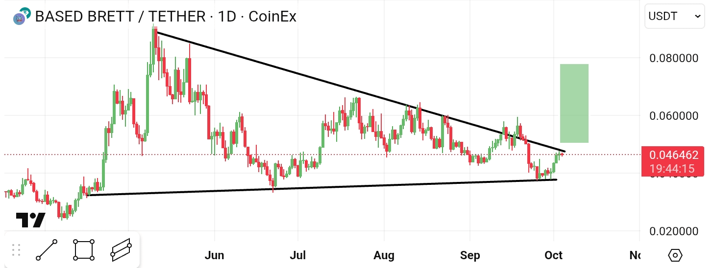 $BRETT 在宏观图表中看起来看涨🦬,因为它在宏观图表中即将突破。