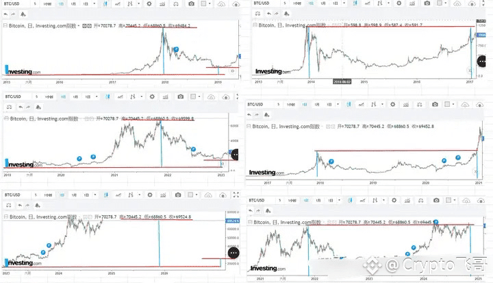 为什么这样说,从技术上分析,4年一周期似乎尚未打破,比特币走势依然强,跟前两轮周期对比,如今是比特币熊后牛初起步的第2年年底,这个时期,比特币都会突破一次牛市的顶峰,到第3年就彻底迎来大牛。