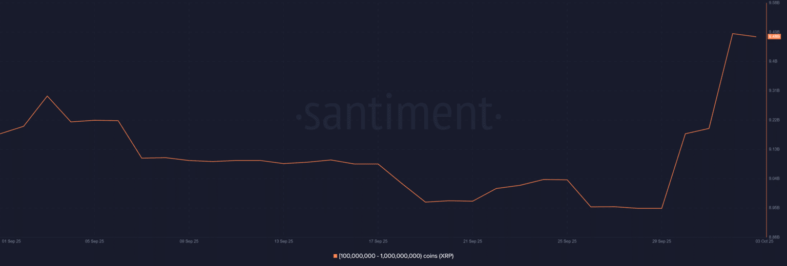 事实是,行星确实在对齐,这不是魔法,而是因为金钱。结果表明,XRP在第三季度表现不佳,仅回报27%,而狗狗币的表现更好。但请注意,因为聪明的钱,著名的“鲸鱼”(持有1亿到10亿XRP的钱包),看到了进入的时机,并以极大的力度进入了市场。