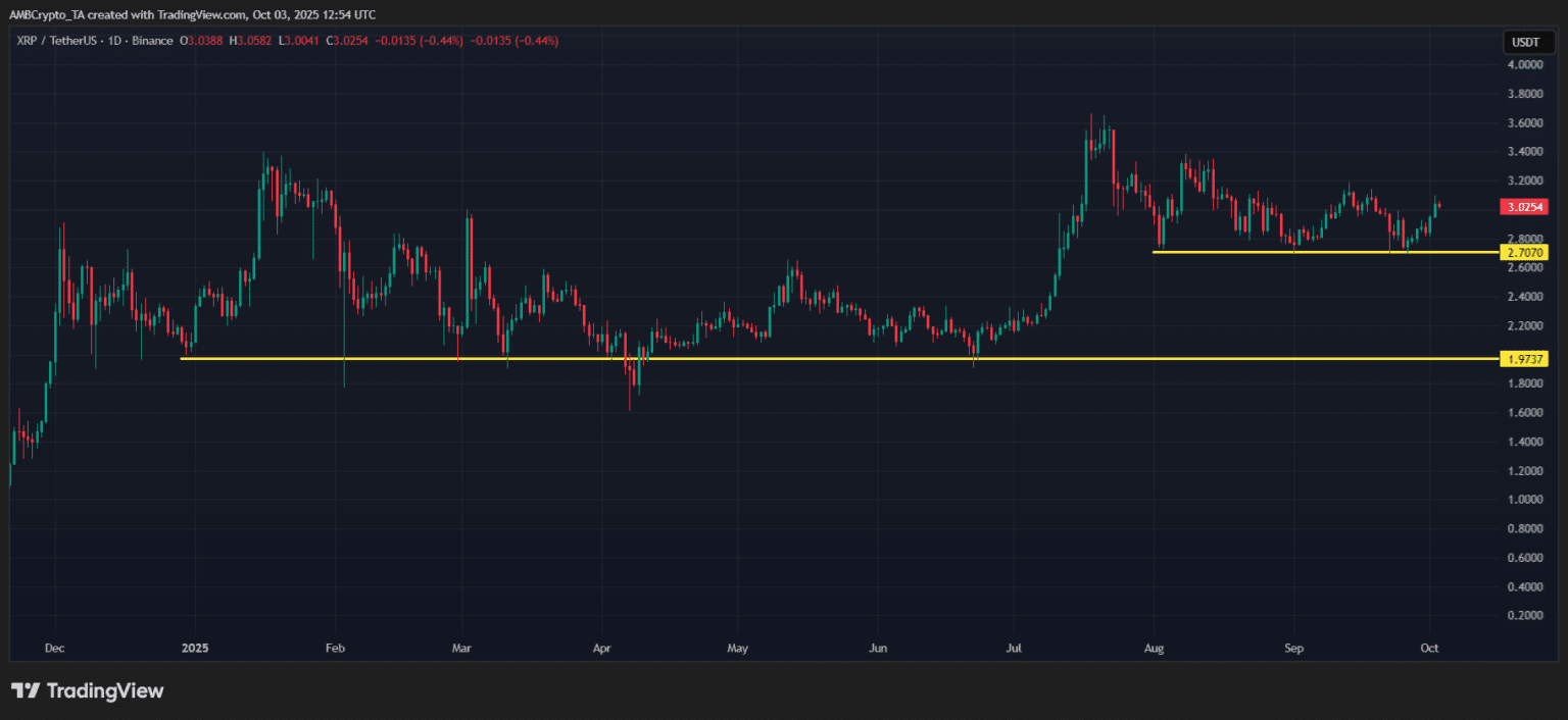 7%的反弹是个警告,但现在真正的考验来了。XRP必须突破的重大障碍,即关键阻力位,位于$3.50到$3.60区间。如果价格能够突破并巩固在这些水平之上,历史轨迹表明我们可能会看到一场爆炸性的反弹,类似于六七月份发生的巨大反弹,季度潜在上涨幅度达到75%。鲸鱼们已经行动,现在只需要整体买入压力将XRP推向新的高点。