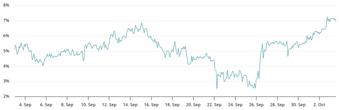 ETH交易者可能对美国证券交易委员会对山寨币现货交易所交易基金(ETFs)的潜在批准感到不安。分析师认为,Solana、Litecoin和XRP在十月份的批准几率超过95%,这可能会增强这些网络的实力,并加剧山寨币市场的竞争。