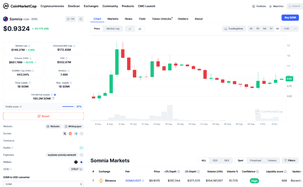 代币经济学:供应上限为10亿SOMI,并带有通缩特性——50%的费用被销毁。因此,长期持有者实际上受益,而不仅仅是看着通货膨胀侵蚀价值。