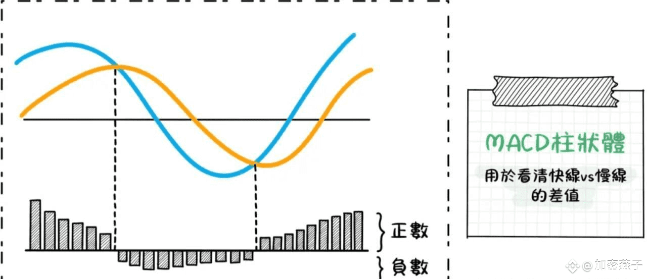 简单来说,信号线(慢线)是MACD线在过去一段时间(一般9天)的平均值。由于是基于过去的MACD数据进行分析,所以也被称为慢线。信号线的存在是为了捕捉较为长期的走势。
