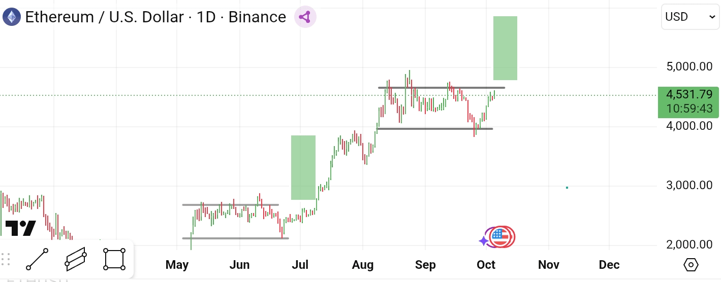 我预计在成功突破后会出现强劲的40-50% 💰的波动。测量目标🏹预计价格将上涨至$5,300 - $5,500区域。