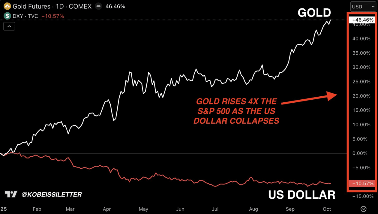 与此同时,黄金在2025年创下了40个历史新高,目前价值高达26.3万亿美元。