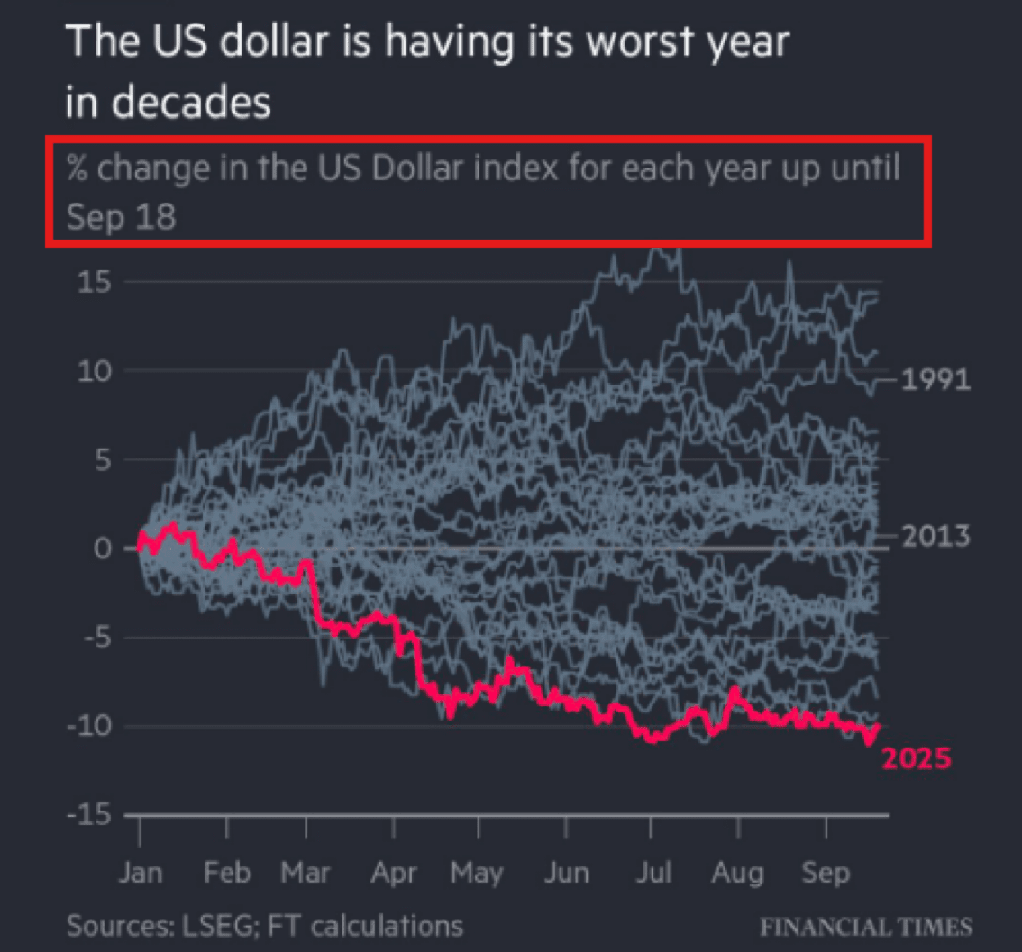 美元现在正处于自1973年以来最糟糕的一年,年初至今下跌超过10%。