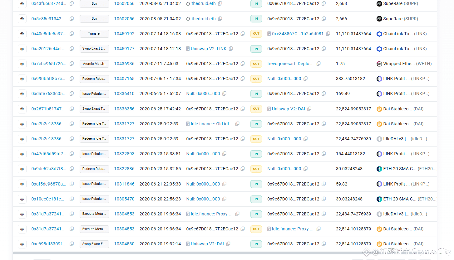 從鏈上的活動分析來看,MrBeast 的錢包地址最早的可以追溯到 2020 年 6 月,初期的操作主要是針對一些 DeFi 項目進行質押。雖然在今天 DeFi 質押已經成為加密產業當中的常規玩法,不過,當我們把時間線調回 2020 年,會發現這種操作極具領先性。