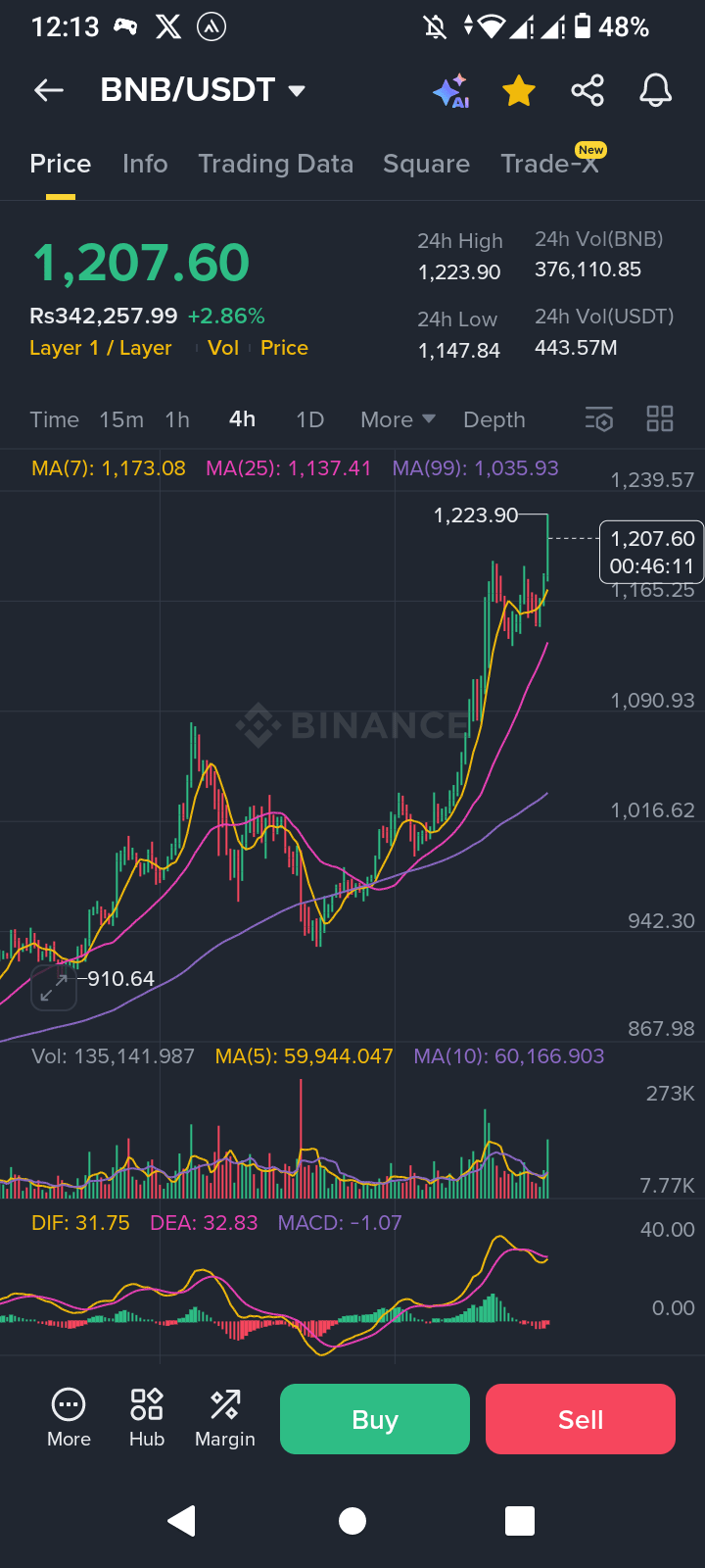截至2025年10月6日,BNB的交易价格约为1,207美元,在短短24小时内实现了3%的稳固涨幅。但重点是——这并不是一些由推文和幻想驱动的随机拉升。这是一个由真正的基本面、严肃的机构兴趣和技术分析师梦寐以求的图表模式支撑的计算性上涨。
