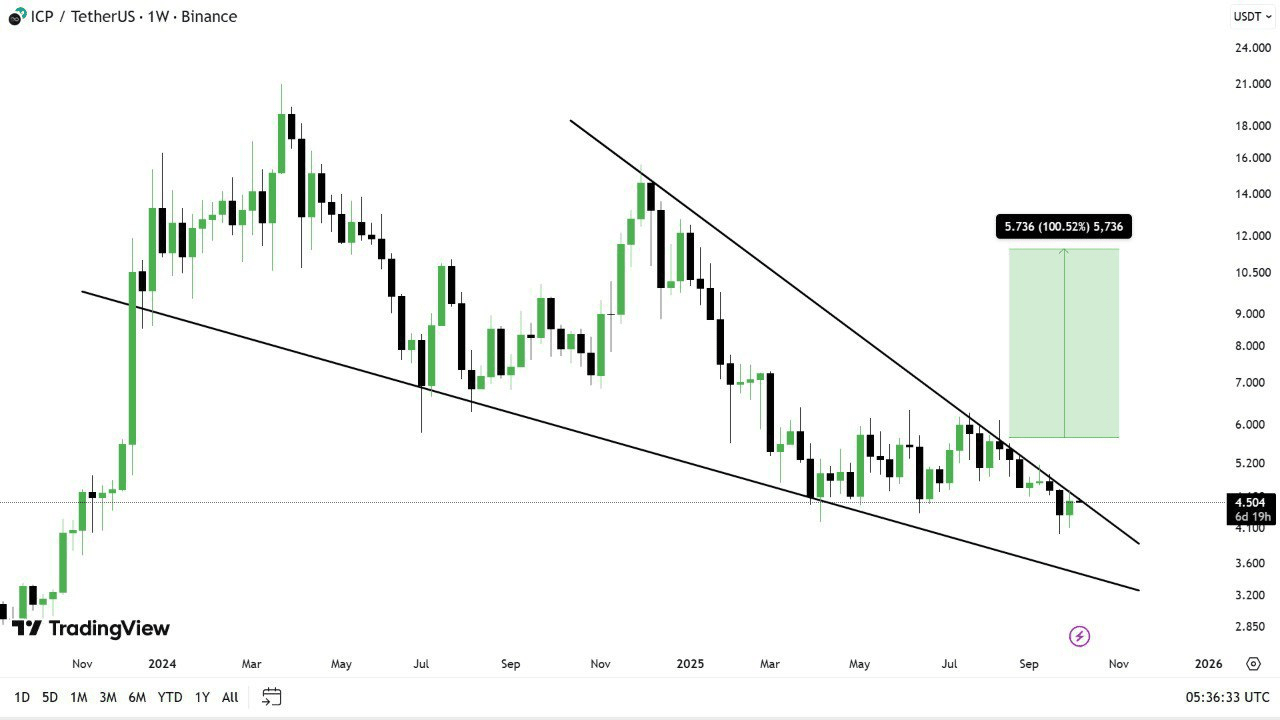 你可以看到ICP再次📈即将从周线时间框架中的下降楔形形态突破👀。