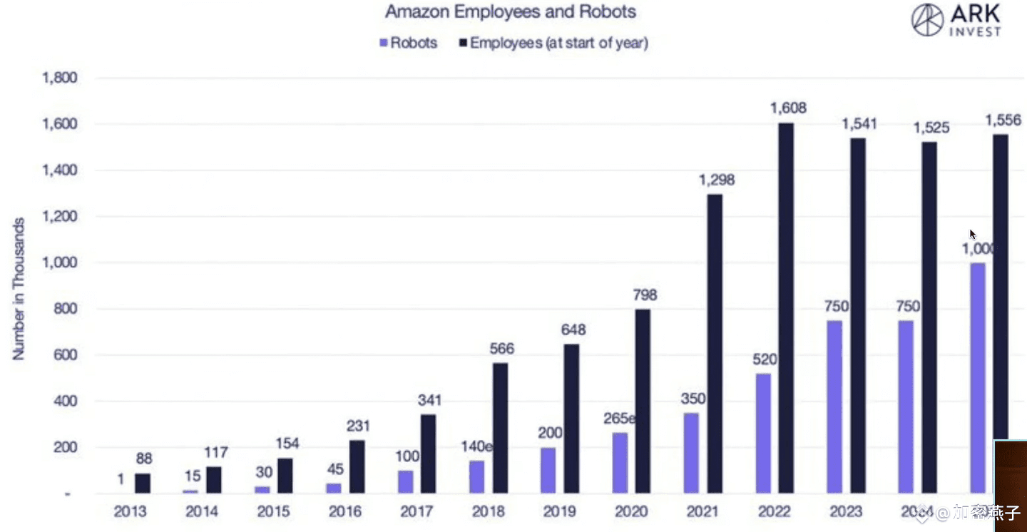以亚马逊的自动化程度为例,现在他们工厂里运行的机器人数量,已经可以完全替代大半人力,这背后折射出的是生产效率的大幅提升。如果再把比特币纳入考量,就更令人振奋:比特币这种「固定总量+可编程发行」的数字资产,不仅抵御了货币贬值,还与技术进步共同推动了社会整体福利的提升。