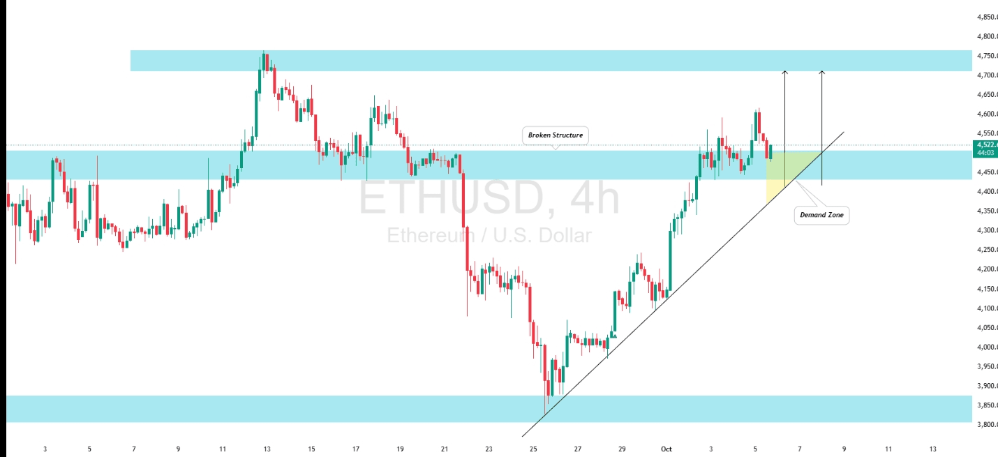 被违反的结构,加上上升趋势线,现在形成了一个收缩的需求区。