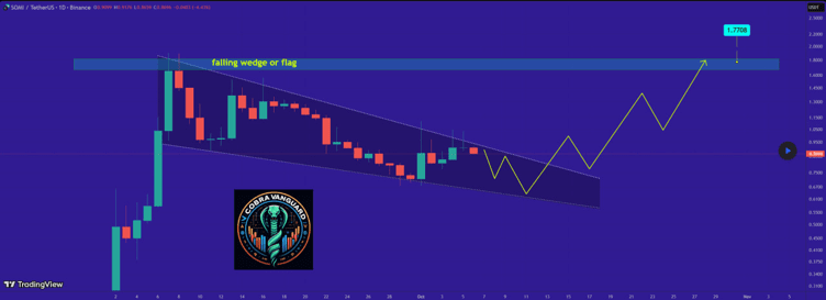 所以如果你注意到SOMI图表,你会看到价格形成了一个上升楔形或旗形,这意味着预计价格会与测量的价格变动(AB=CD)相等。