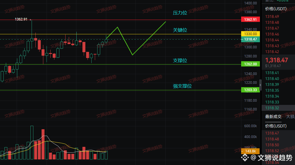 我的判断很明确:BNB中长期看涨,但短期必现剧烈洗盘!小白现在切忌盲目追高,建议分批建仓,跌破1262止损,突破1330加仓。