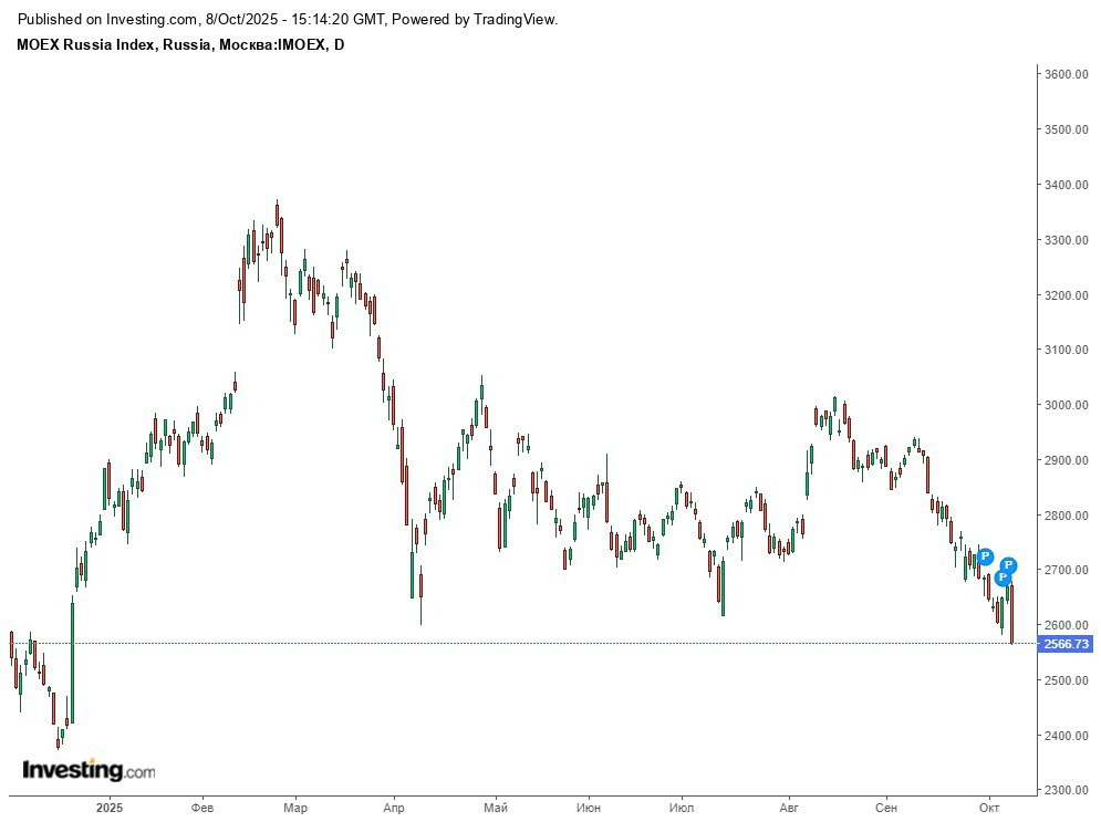 最后一次主要的俄罗斯股票指数在2024年跌破2600,而在此之前是2022年冬季。