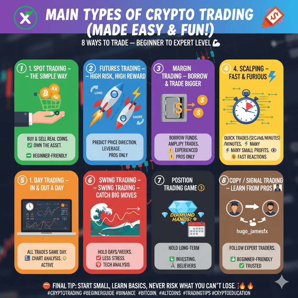 让我们分解人们交易加密货币的8种主要方式,从适合初学者到专家级别 — 这样你可以选择适合你的风格的方式 💪🚀