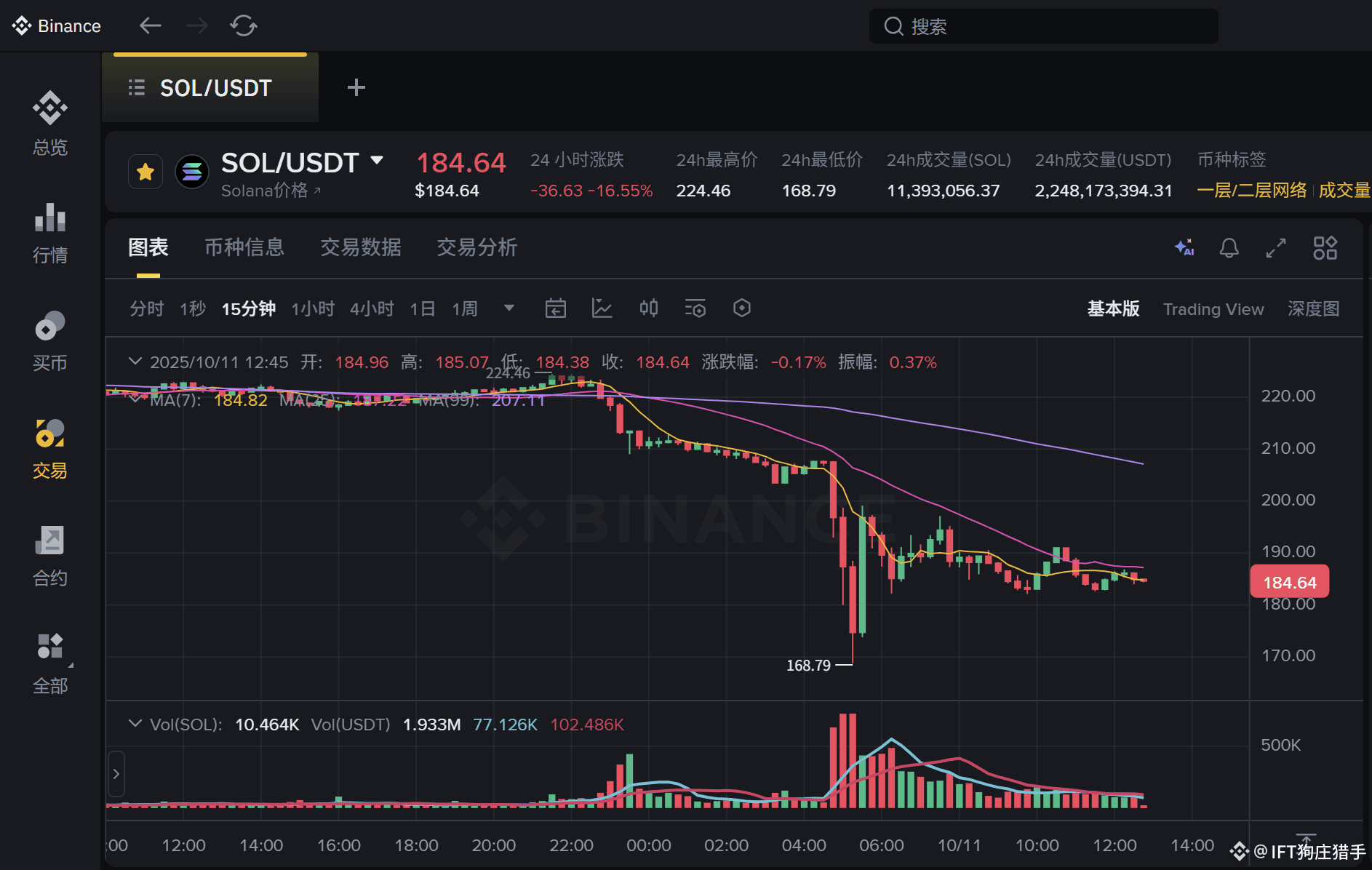 SOL:从293跌到184,跌37%,散户:"我**,又宕机了吗?"