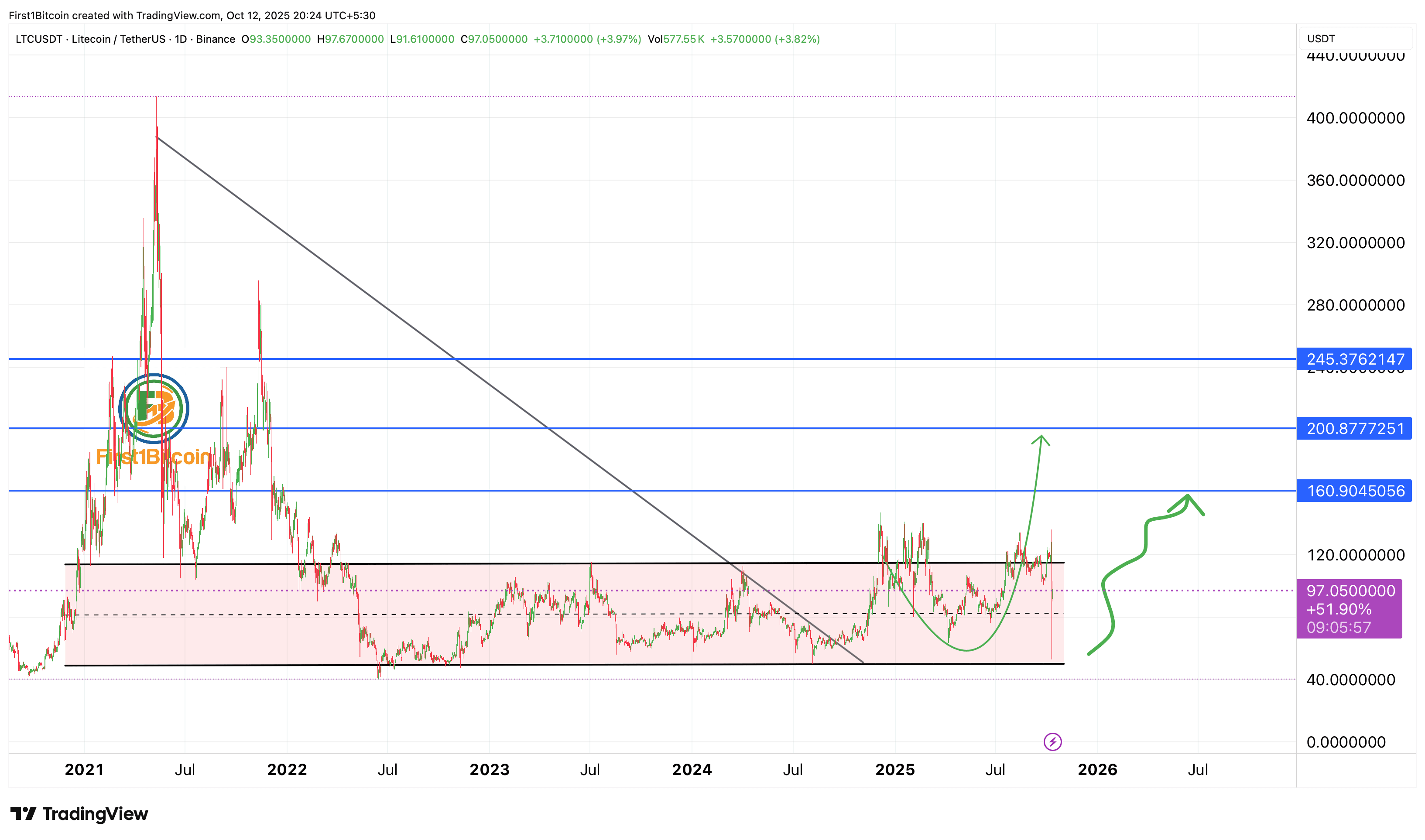 $LTC已经在一个巨大的积累范围内整合了几个月。现在正在形成一个杯子和把手模式——暗示潜在的趋势反转。
