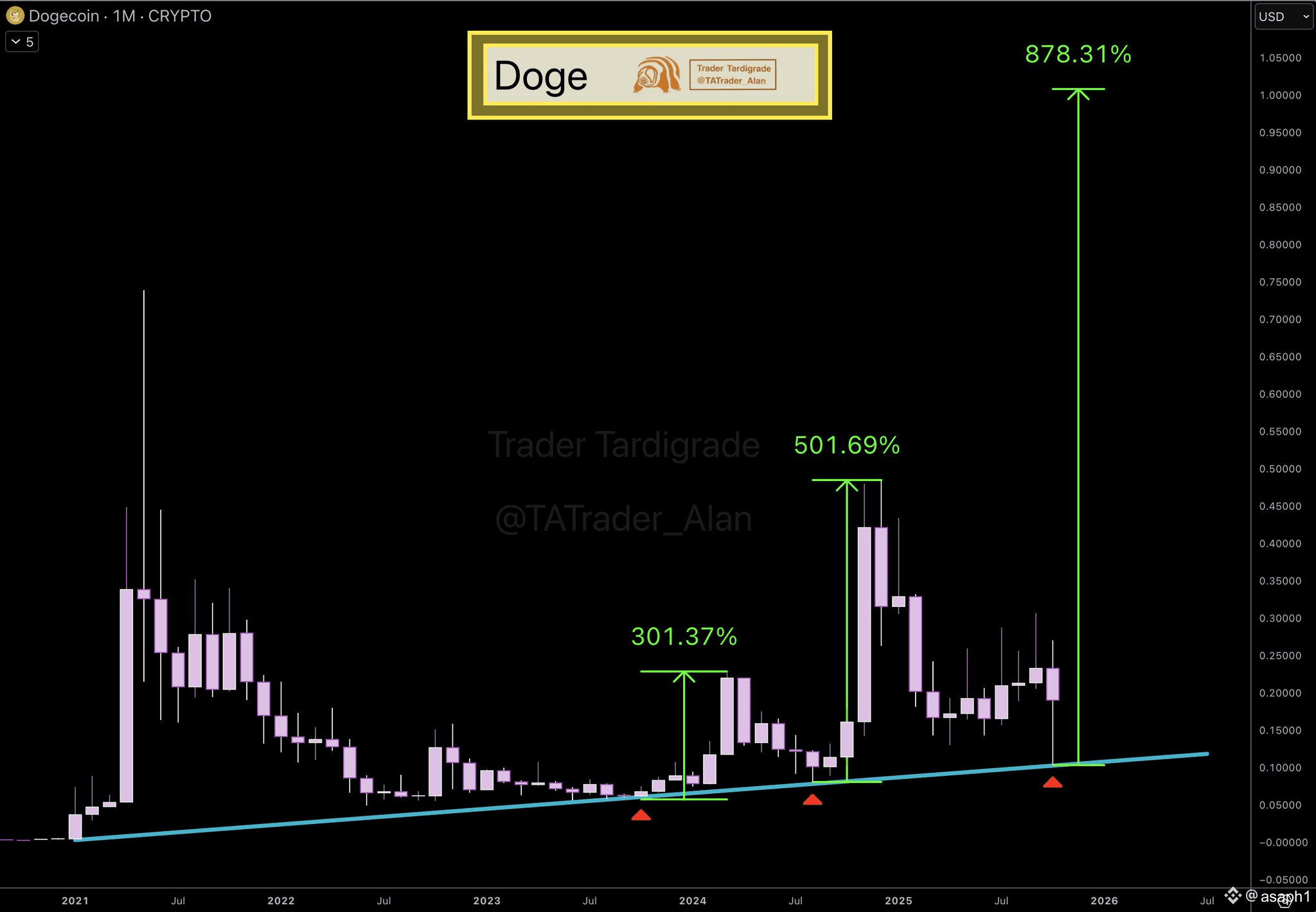 Y la proyección que, siguiendo la historia, apunta a un 878.31% de retorno desde el último mínimo. ¡Esto nos pondría a Doge cerca del dólar otra vez! El momentum técnico está gritando "¡compra!" 🔥