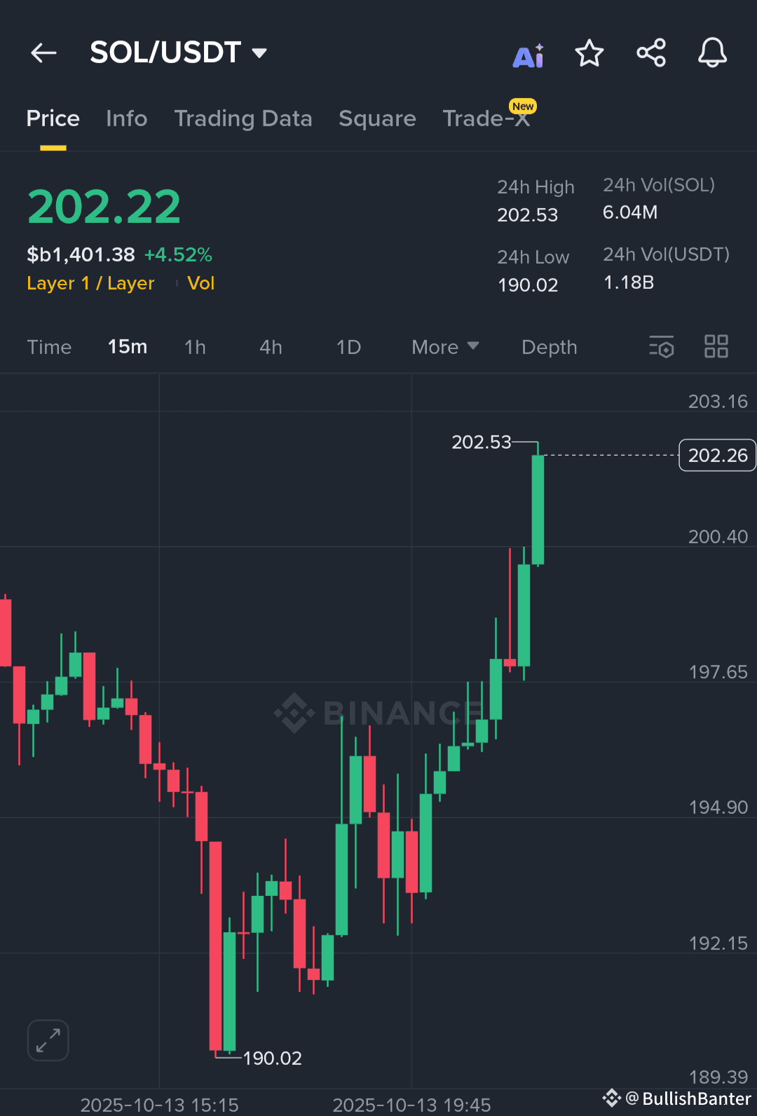 真是一个强劲的胜利!SOL 从 190 美元飙升至 202 美元,在短时间内录得 +6% 的强劲上涨。正如我所预期的那样,动量完全按照计划增加,牛市现在完全掌控。