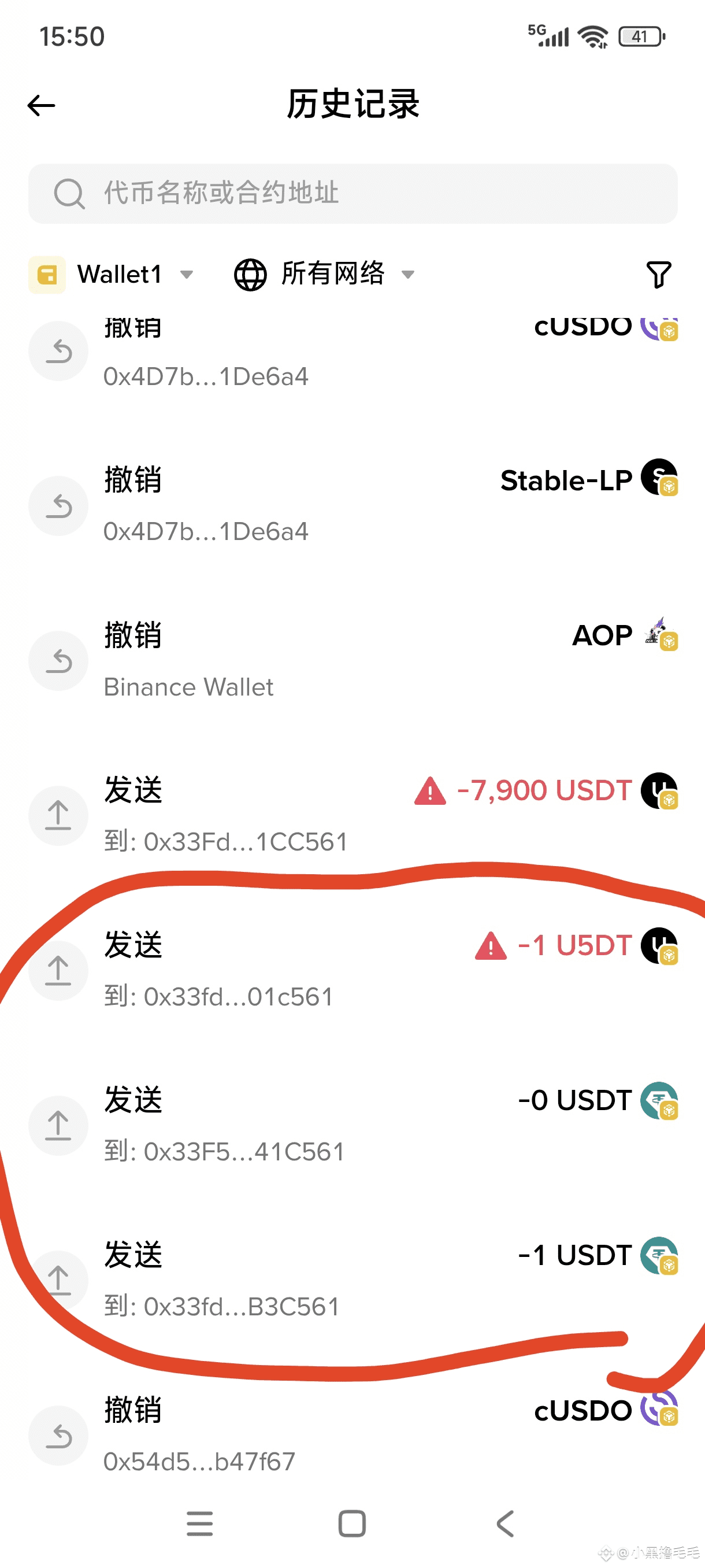 每当我们成功发送一笔usdt,后面都会多出两笔从我们钱包未授权发送出去的交易。