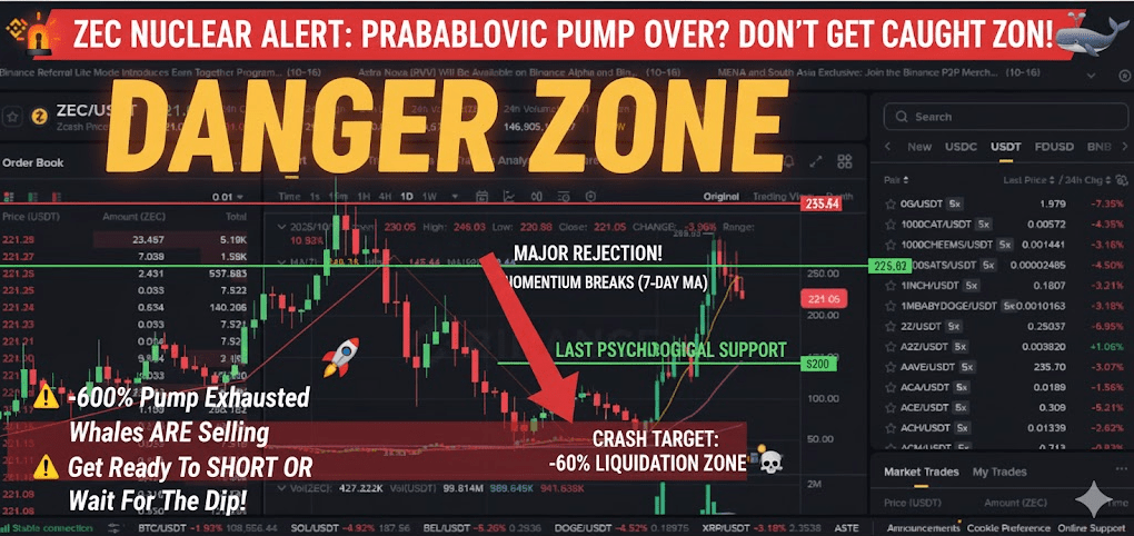 看看这张图表!$ZEC 刚刚从低点打印出+600%的涨幅,绝对是一个世代性的拉升!但我看到一个巨大的红色警告信号,你无法忽视。