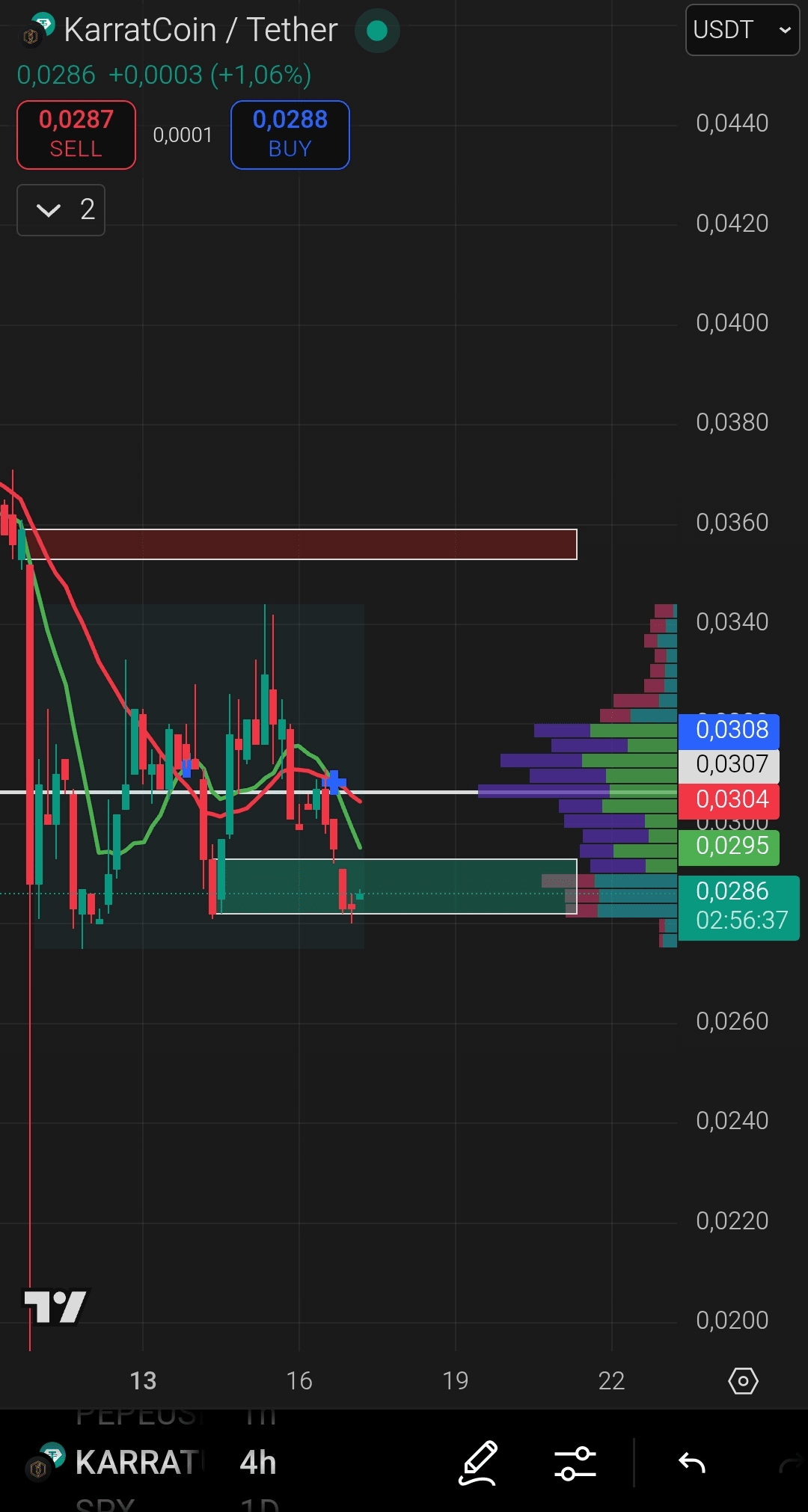 货币 KARRAT 目前正在一个下降楔形模式中,这通常是一个反转模式,但目前的趋势仍然偏向下跌,直到形态完成为止。