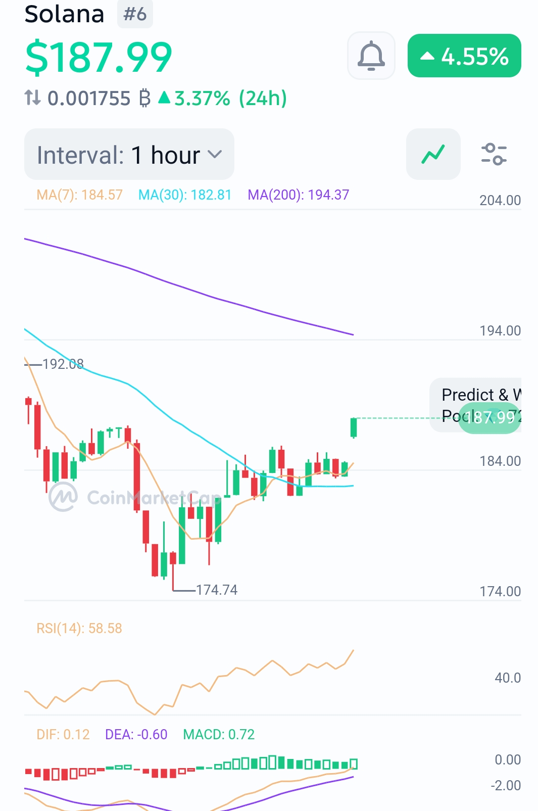 $SOL 在 $188 水平附近交易,经过从 $180 附近的强支撑反弹而形成紧密区间。1小时图表显示出一个基础正在形成,这表明买家正在为可能突破 $189 做准备。收盘价高于 $190.50 可能确认向更高阻力水平的移动。现货交易者可以在给定区域买入,而期货交易者应将风险控制在 $179.00 以下。