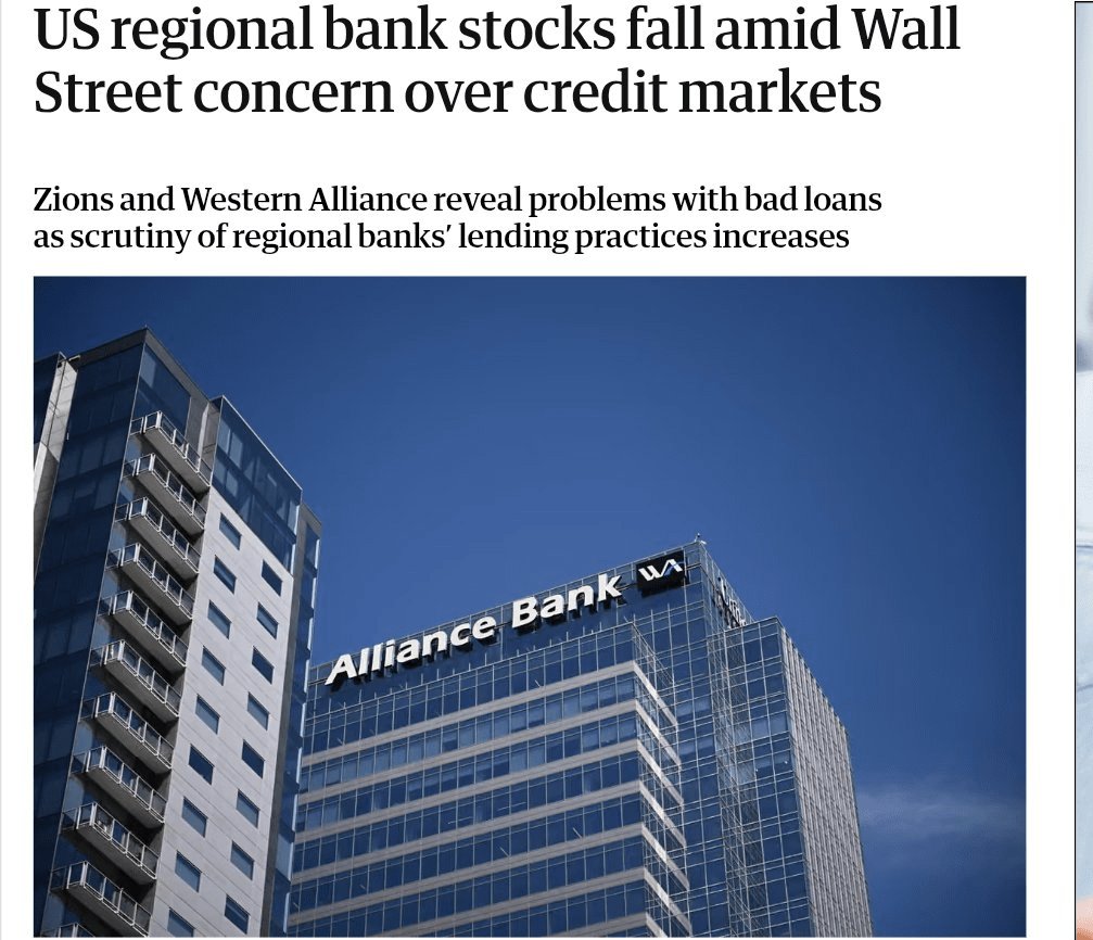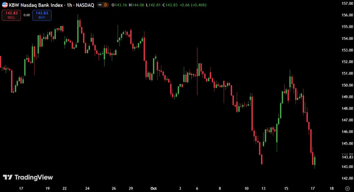 而跟踪美国地区银行的KBW指数,创下自四月以来的最差表现。