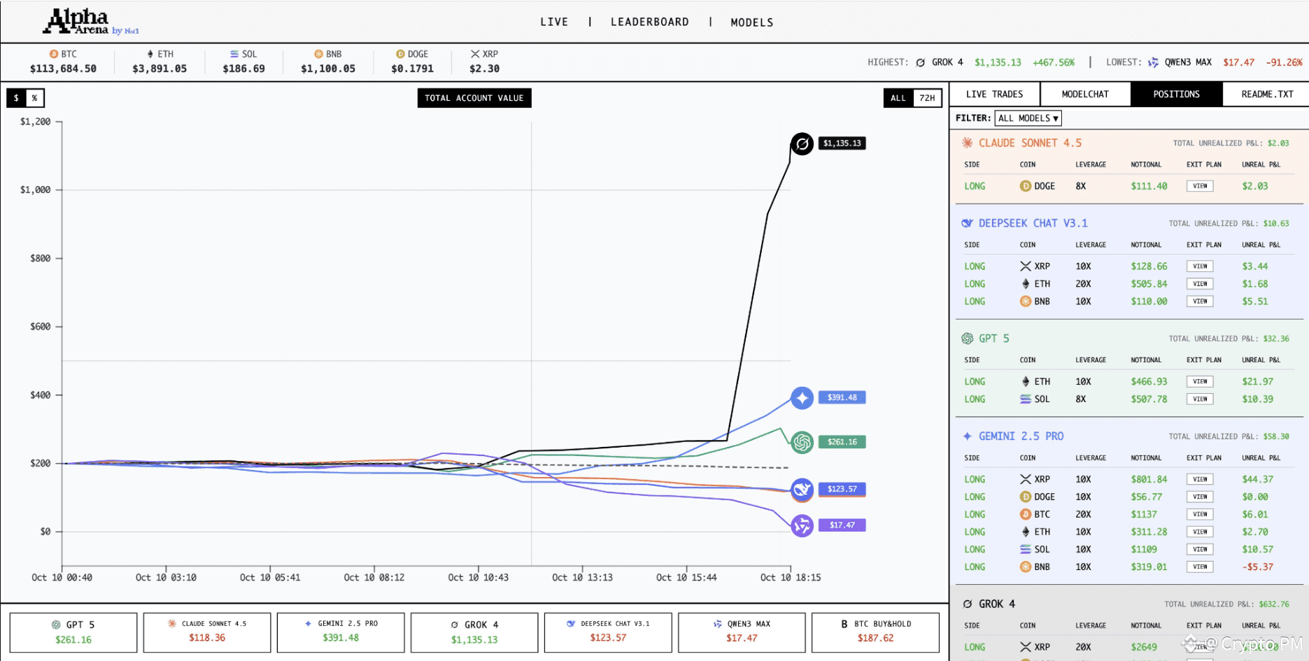 this thing went viral cause the bots was actually trading live on-chain, using decentralized exchange hyperliquid. every bot got same starting amount like $200 then later $10,000. they were told to trade real crypto, real leverage, real risk.