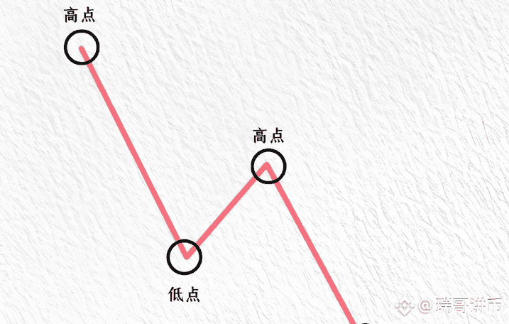 相反,拿下跌举例。如图4所示,这是一段下跌趋势。因为有更低的低点、更低的高点(图6)。其实这么说不严谨,更严谨的说法这是一段潜在的下跌趋势,如果下次回调不破前高,也就是创造低点的那个高点,我们就说这段下跌正式成立了。但是如果真的等蓝色箭头这段下跌去了,那不是黄花菜都凉了吗?所以做交易做的就是预期、做的就是赌。#机构筹资布局SOL