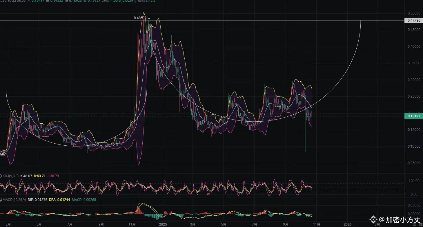 在这期间,比特币完成了周期切换,以太坊开启了生态扩张,而狗狗币却一直稳稳地守在低位,看似平平无奇,却一点点夯实了底部结构。