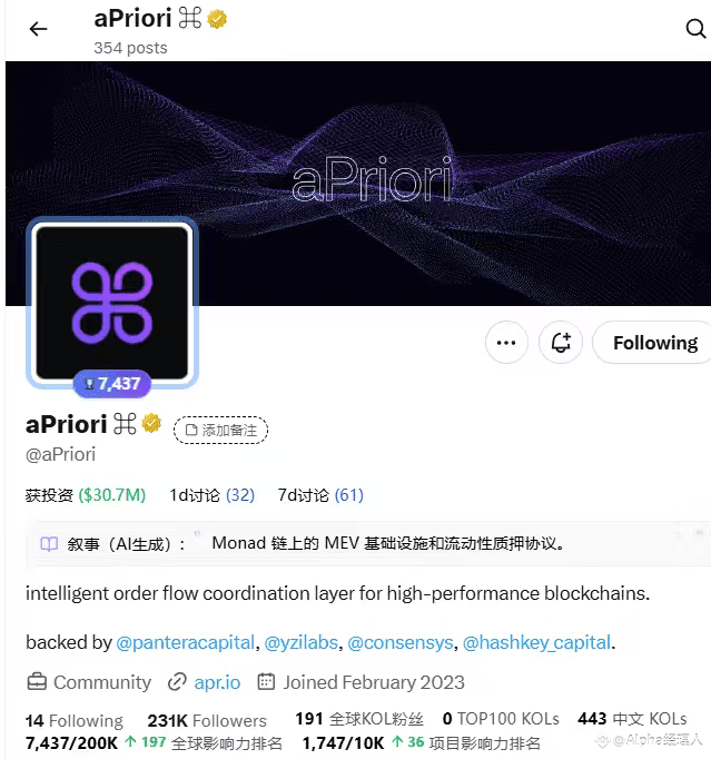 aPriori 是一个 MEV 基础设施 + 流动性质押协议,专为并行执行时代设计,基于 Monad 原生构建。