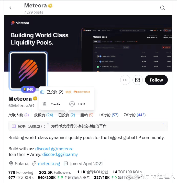 Meteora 是一个基于 Solana 的动态流动性池协议。它使用集中式流动性管理机制 (DLMM),支持自动做市和代币交易;通过质押 + 空投机制激励流动性提供者 (LP) 的参与。