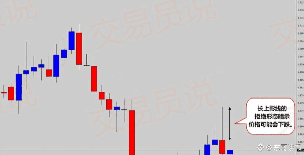 当某根烛台(K线)的实体一端拖出一条很长的上下影线时,说明市场对该价位做出了“拒绝反应”。