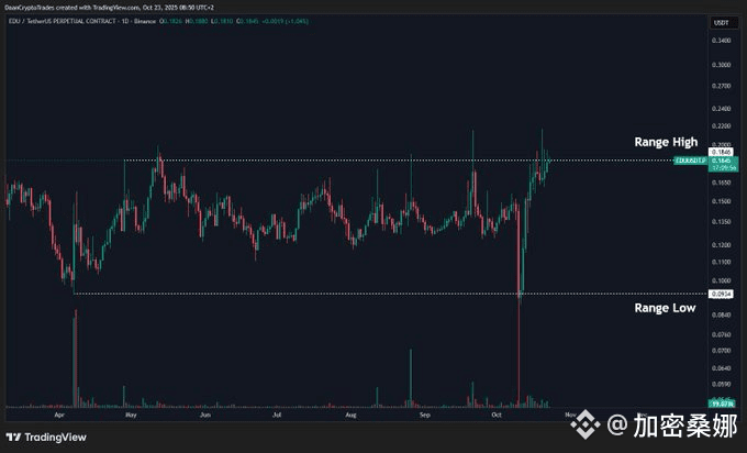 EDU 冲到区间高点了,从 “同花” 开始就一路猛涨,背后是 YZi Labs 和币安刚领投了 500 万美元融资 —— 难怪这么硬气。