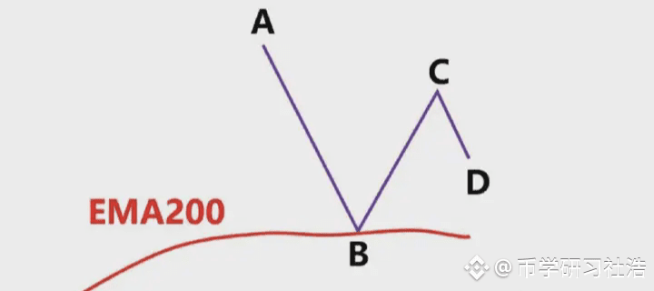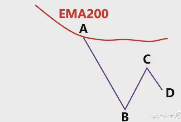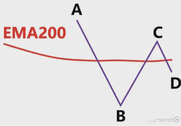 我们就是通过EMA200来判断行情的趋势,我们先看下面这个图2.4-17,