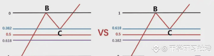 如果B的区域不是在0.382-0.618的回调区域当中,而是在0.382之上,也就是属于轻度回调之上,如图2.4-25所示,