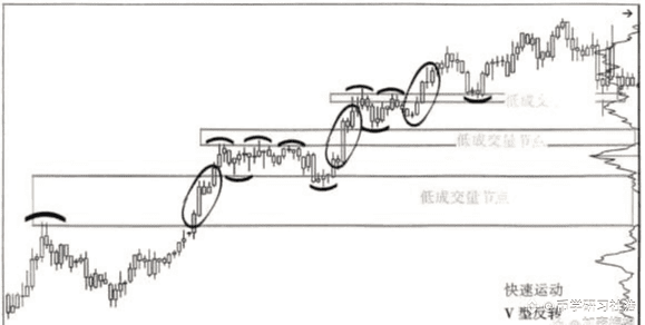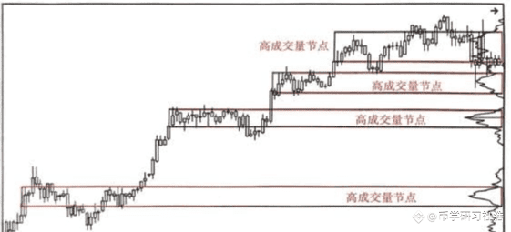 区间抬升除了符合道氏理论中的上涨常态外,也非常符合威科夫交易法的法则。在《威科夫2.0》中就提到过,每一个交易区间其实都对应了高成交量节点。