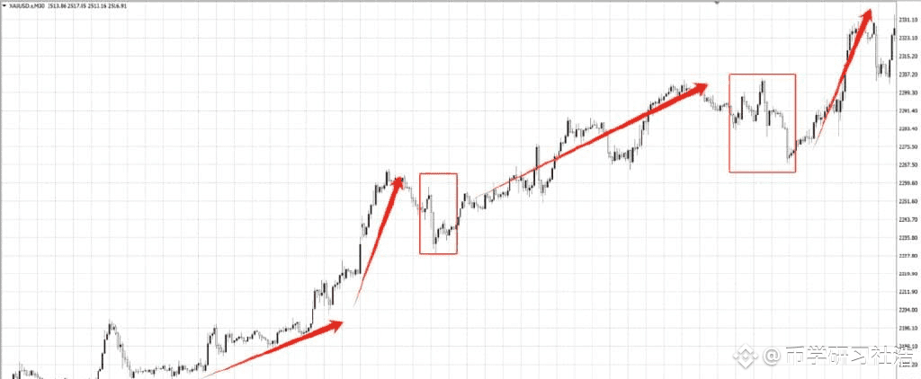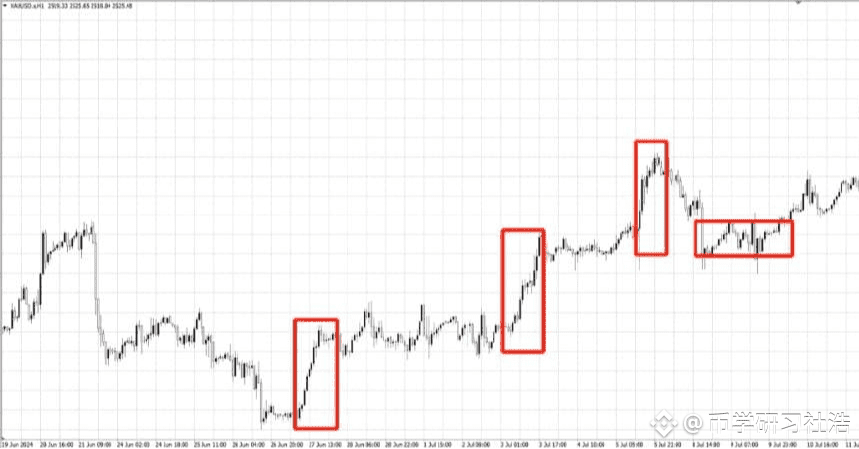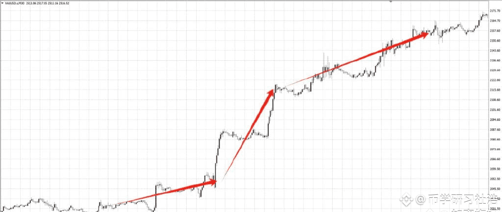 一般来说,当行情出现破位的时候,往往会回踩确认支撑,但是在强势行情时,由于市场情绪一致看多,多头不会给任何回调买入的机会,就会出现这种角度的强势拉升。