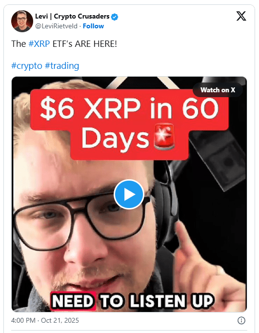 金融专家莱维·里特维尔最近强调了这一发展的规模,并指出五个独立的发行者正在等待美国监管机构在几天内的最终裁决——他认为这一时刻可能标志着XRP机构采用的一个关键转折点。