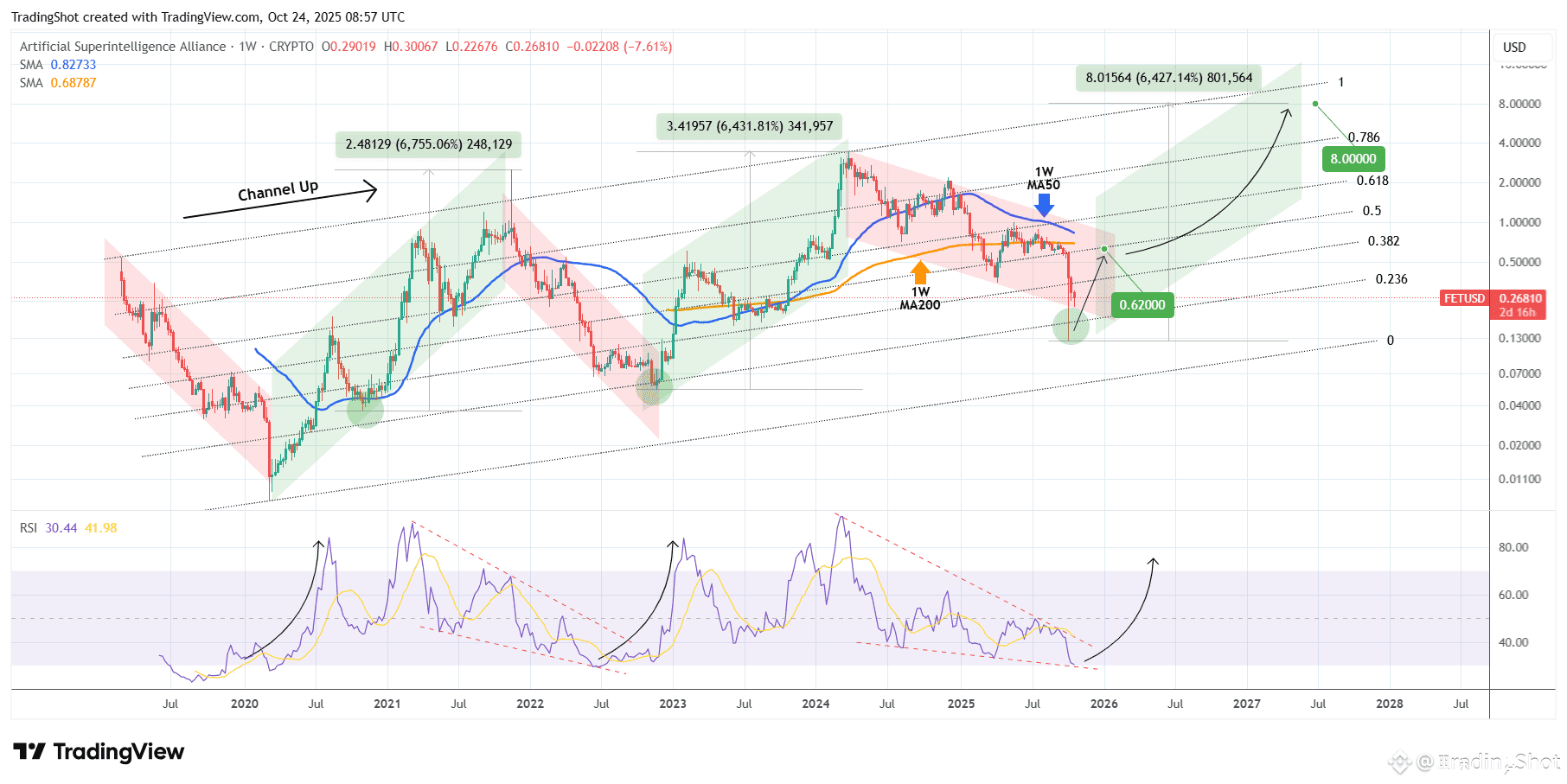 在过去的6.5年中,FET一直在一个强劲的上涨通道模式内移动,沿途创造了清晰的牛市和熊市腿。📈📉