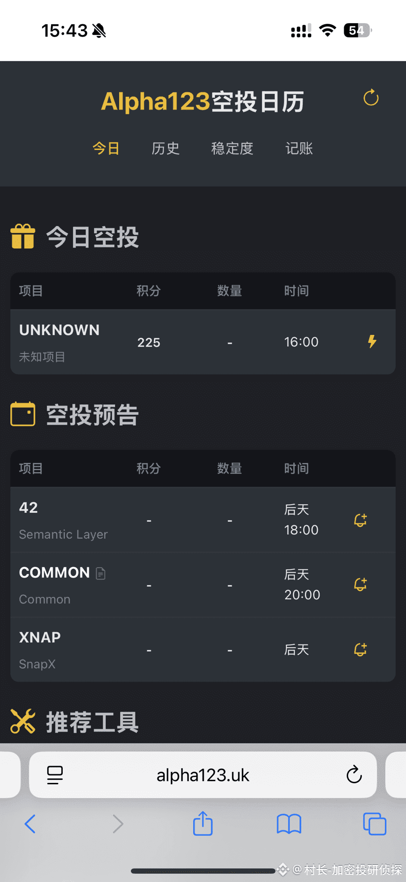 家人们注意了!Alpha空投又放大招啦~今日16:00,神秘老币“UNKNOWN”带着225积分准时空投,这波突袭千万别错过!